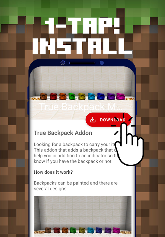 True Backpack Addon pour Minecraft PE est un contenu téléchargeable gratuit pour le jeu Minecraft Pocket Edition, où vous pouvez automatiquement télécharger et installer la dernière version du mod True Backpack dans votre monde Minecraft.
