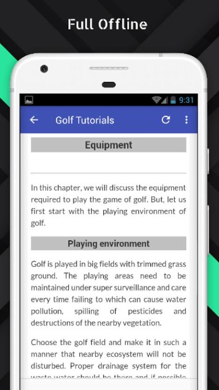 Tutorials for Golf Offline is a complete application for those of you who want to learn Golf easily and for free. There are dozens and even hundreds of Golf tutorials starting to base for beginners to advanced. All these tutorials you can read offline without the need to connect to the internet or mobile data.