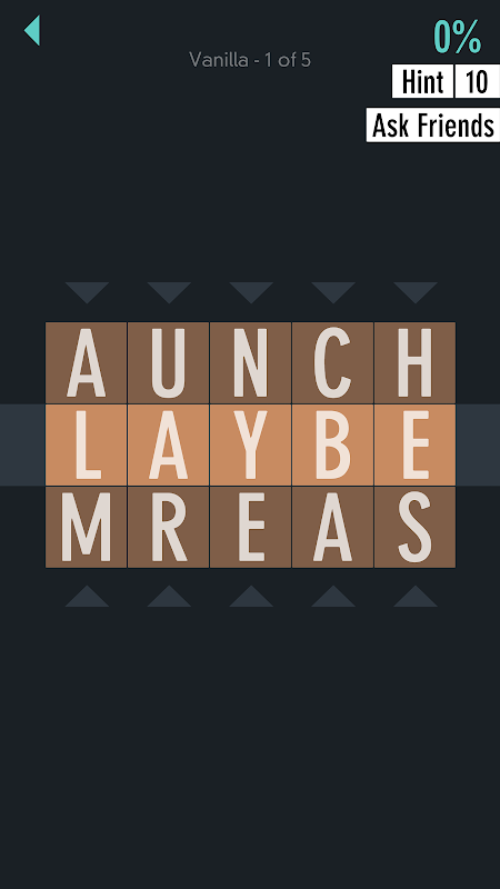 Déplacez les colonnes de lettres vers le haut et vers le bas pour essayer d'épeler les mots de la rangée centrale. Le jeu continue jusqu'à ce que vous ayez utilisé toutes les lettres d'un jeu au moins une fois.