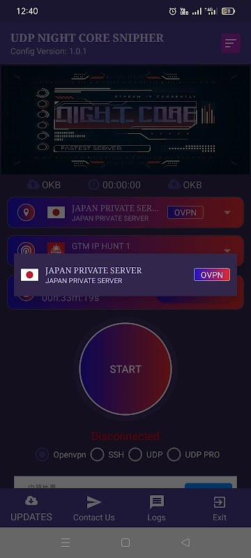 UDP NIGHT CORE SNIPER est une application VPN de pointe conçue pour offrir aux utilisateurs une sécurité et une confidentialité inégalées tout en garantissant des vitesses de connexion ultra-rapides. Notre application prend en charge les protocoles de pointe, notamment OpenVPN, SSH, UDP et OPENVPN UDP, pour offrir une expérience VPN polyvalente et fiable.