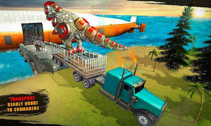 Tired of regular dinosaur transporter & truck driver game. Enjoy one of the most amazing robotic dinosaur transport game. Load autobots on transporter truck; drive transport truck to the seaport and load dinosaurs robot transformation on submarine cabin. Ride submarine underwater; explore nature and sea animals while driving cargo vehicle. Transport dinosaurs in submarine to its destination point Reach safari jungle and set dinos free into the wild forest once trailer truck is parked safely at sea port. Experience modern dino transporting missions in the newest angry dino transporter simulator. In this underwater transport adventure; drive dinosaur transporter submarine overseas where no can drive transporter truck.