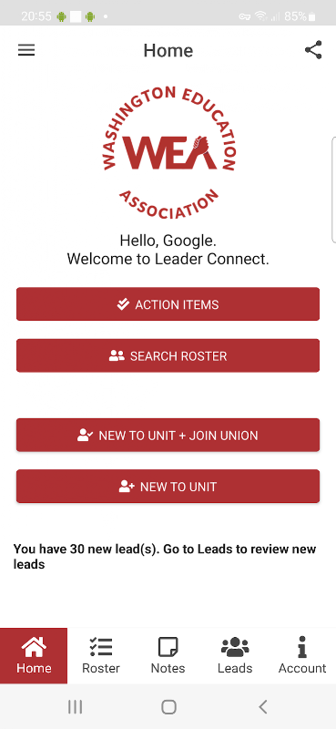 Union Connect est l'application qui héberge l'outil Leader Connect de la Washington Education Association (WEA) destiné aux dirigeants. Cette application est conçue pour aider les dirigeants syndicaux locaux à effectuer le travail de recrutement de membres qui garantit que tous ceux qui souhaitent devenir syndiqués en sont membres.