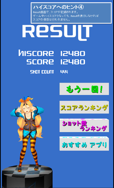 Score élevé à l'écran ④Result (game over) est confirmé, il sera envoyé au classement.