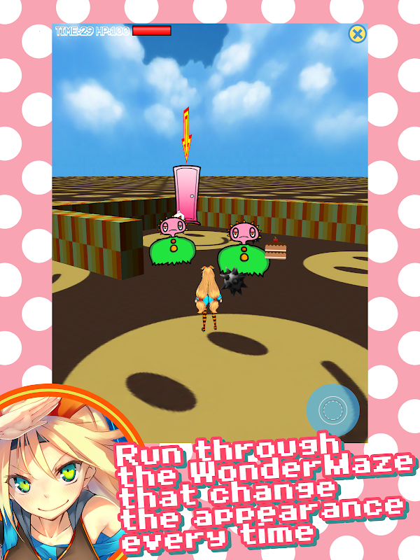 Run through the WonderMaze that change the appearance every time when you play. Dodge thin enemies !