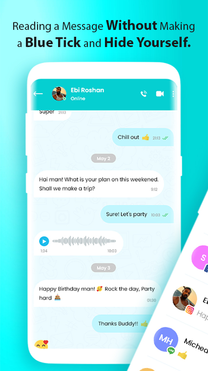 Hide Unseen online, no seen last seen, hide read is the best and reliable offline chat for WhatsApp and messenger to hide blue ticks, hide read sign, hide last seen status of both chat apps. Unsee no last seen applications are used for reading WhatsApp messages and messenger messages without informing the other users about the double tick or seen its means observe your messages from a hidden place that no one can use your online status.