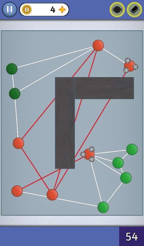 Mais cette variation du jeu de réflexion contient des obstacles qui ajoutent un challenge supplémentaire au jeu: des murs à ne pas traverser, des liens de longueur fixes, des trous noirs qu'il ne faut pas toucher...