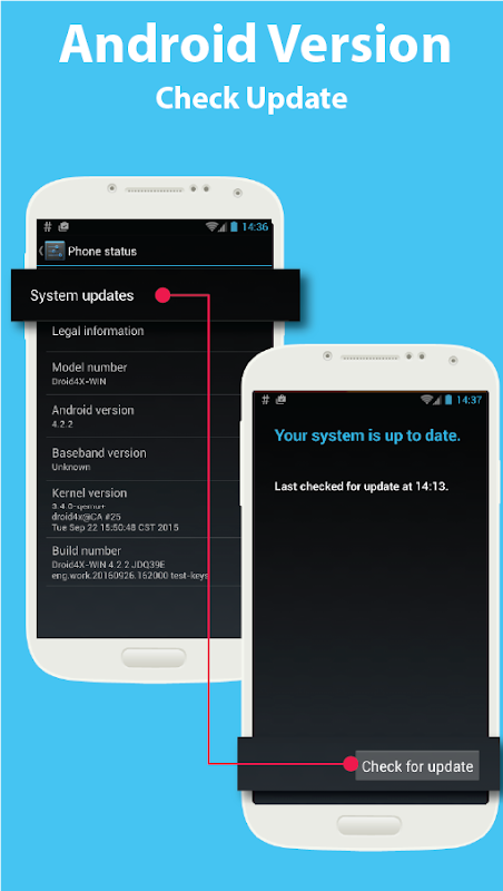 Application peut aider à vérifier l'installation, mise à niveau augmenter votre smartphone ou tablette en utilisant la dernière version du système d'exploitation Android, consultez la dernière