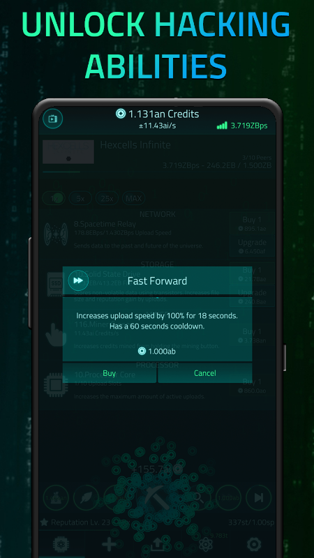 Téléchargez des fichiers volumineux, gagnez en réputation, recherchez des technologies étonnantes et explorez des composants de science-fiction tout en regardant les barres de progression se remplir plus rapidement à chaque mise à niveau !