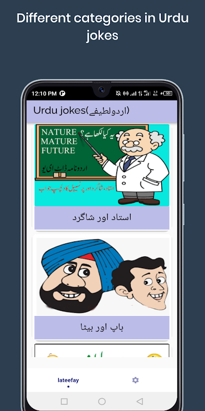 Cela a une collection des meilleures blagues drôles en ourdou sans images / images induisant des blagues mari-femme, médecin, enseignant et étudiant et les meilleures blagues de tous types. Il ne contient pas de blagues pour adultes.