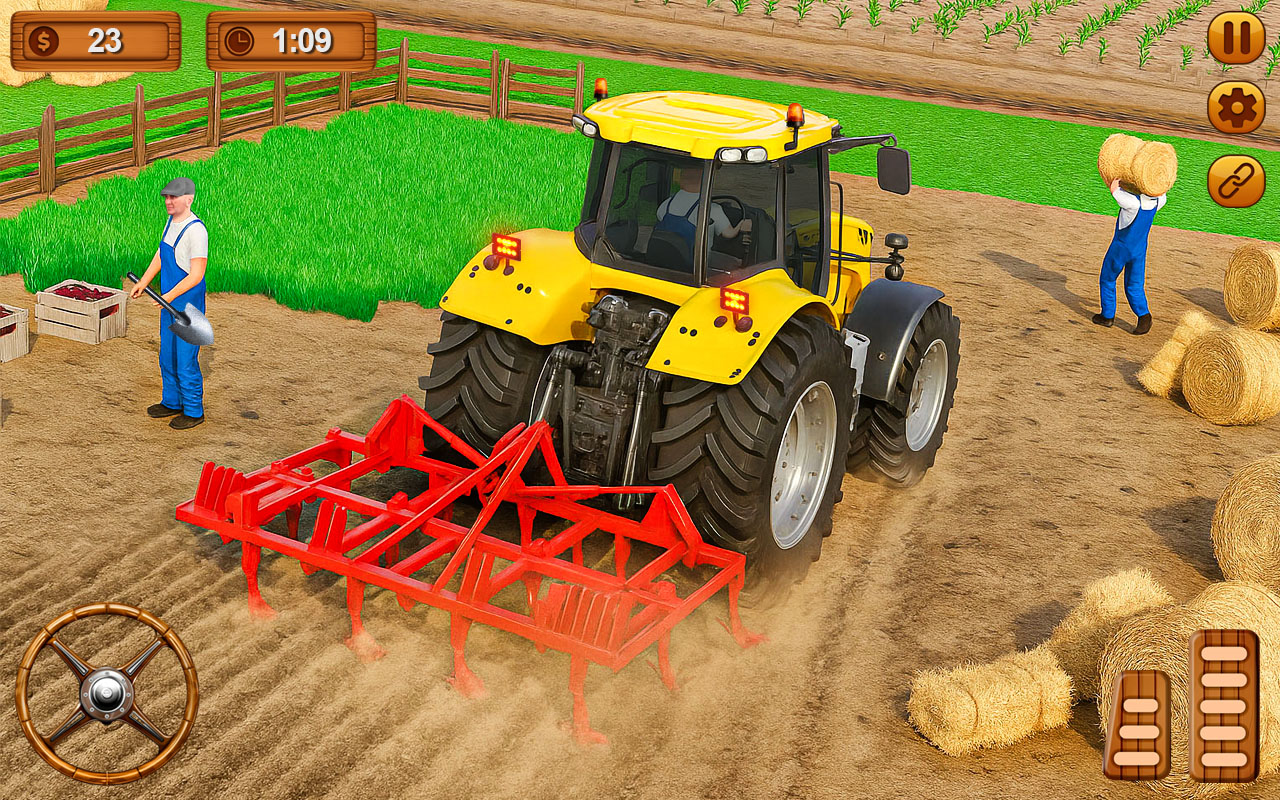 Bienvenue dans ce jeu de conduite de tracteur agricole 2025, où vous découvrirez le village de tracteurs et vivrez des aventures agricoles en 3D. Explorez les champs avec ce jeu de simulation de tracteur agricole et effectuez vos tâches quotidiennes en 3D en toute simplicité. Dans ce jeu de conduite de tracteur enchaîné 2024, vous piloterez de puissants tracteurs sur des terrains difficiles tout en travaillant comme un fermier.