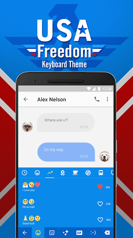 - USA Freedom Keyboard Theme only works with Facemoji Keyboard + GIFS installed on your phone. If you don’t have it, you will be automatically led to the Google Play download link, then download and choose Facemoji Keyboard + GIFS as your default keyboard.
