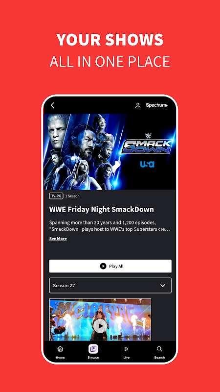 Téléchargez l'application USA Network pour regarder WWE Smackdown, le PGA TOUR et le LPGA TOUR, la Premier League, la NASCAR, la WNBA, The Rainmaker, Everything on the Menu with Braun Strowman et bien plus encore !