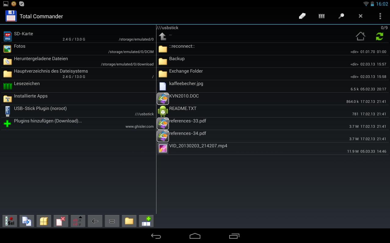 Le filemanager Total Commander peut être installé sur le Play-Store: