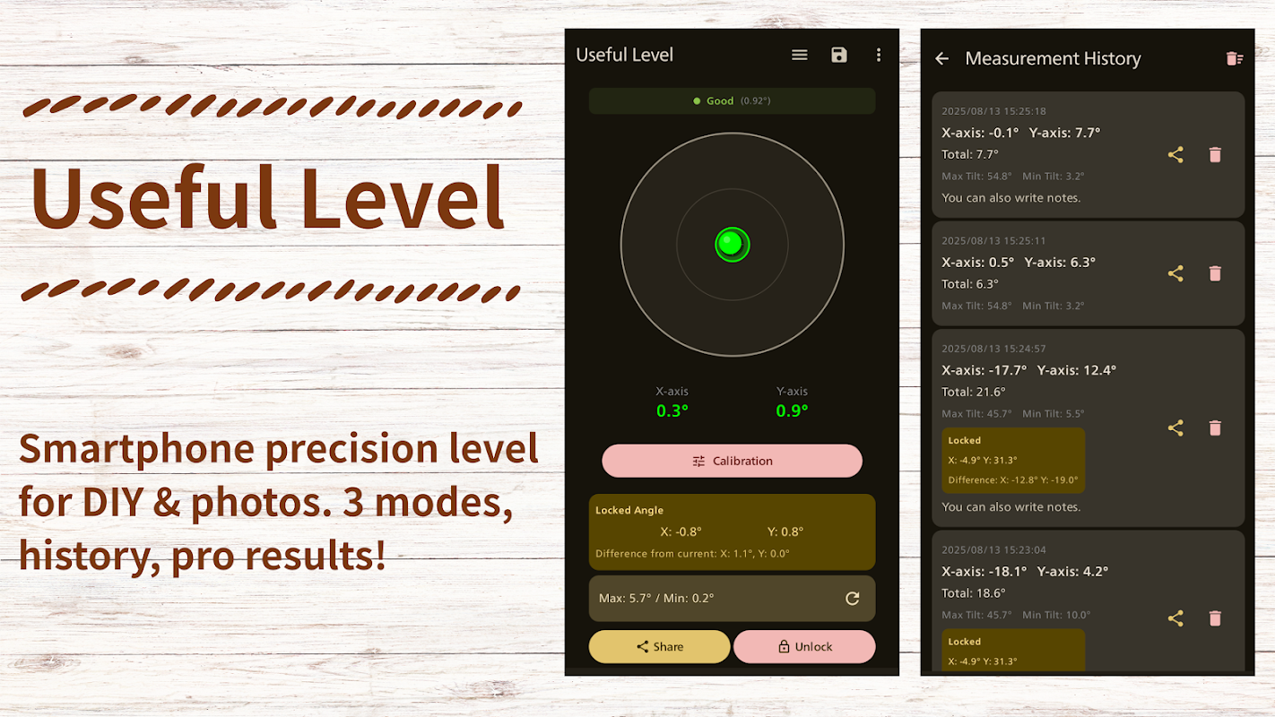 Transformez votre smartphone en outil de mesure professionnel ultime. Installez **Useful Level** et commencez vos mesures de précision dès aujourd'hui !