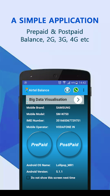 This magical app is a simple application to check all Mobile Prepaid/Postpaid Operators - A free app for all the shortcuts *(USSD codes)# at one place e.g. Offers, Balance Check, Customer care, 2G/3G/4G Data Balance and you can call customer care too without remembering any code or number.