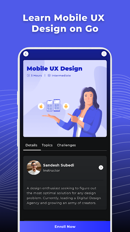 L'application 'Mobile UX Design Course' transcende l'apprentissage traditionnel, offrant un voyage expérientiel avec un éventail d'exemples de conception UX mobile et des directives UX mobiles approfondies. Ce cours ne se contente pas d'enseigner; ça inspire.