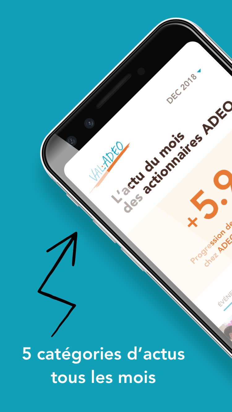 L'application VALADEO permet à tout actionnaire de s’informer sur les résultats, les enjeux, les projets ADEO au global et aussi au niveau de chacune de ses entreprises.
