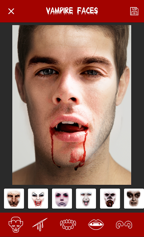 Vampire photo editor peut vous aider à avoir un maquillage virtuel de vampire et à éviter de véritables problèmes sanglants, avec un effet de vampire en ligne!