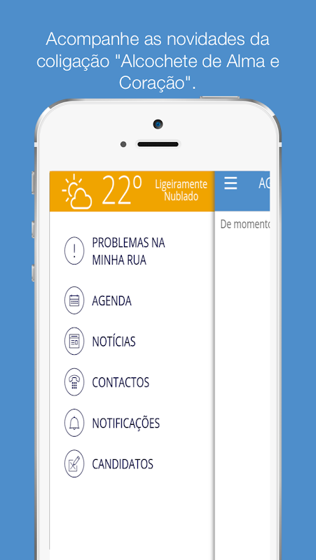 Permite receber atualizações da campanha, saber quais os candidatos aos vários orgãos, notícias, assim como permite aos Munícipes poderem reportar os problemas da sua rua, bairro ou freguesia.
