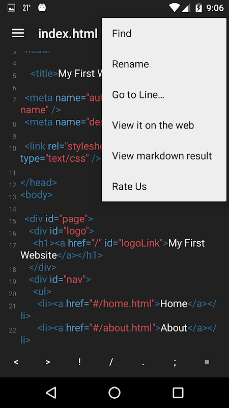 VCode is a fast, easy, stable, full featured and sophisticated code editor for Android devices. It is a fully featured integrated development environment (IDE) for all android phone and tablets. Text editor can edit text and source code editor (similar to all other code editors). Now you can make your websites on your android phone. You can code HTML, PHP, CSS, CSS3 or any other of the more than 100 supported coding languages. It is just like all the other web code editor.