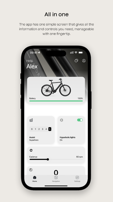 • Ayez un contrôle total sur votre vélo avec des paramètres facilement réglables - l'expérience de vélo électrique ultime en un seul clic