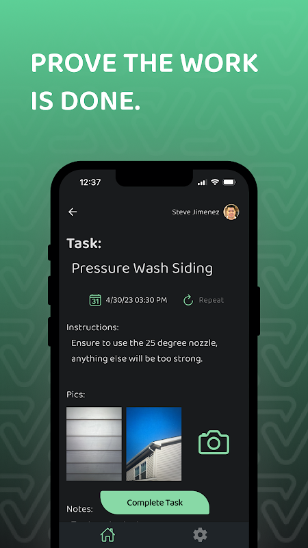 · L'employé accomplit les tâches et joint des photos et des notes au besoin pour vérifier l'achèvement.