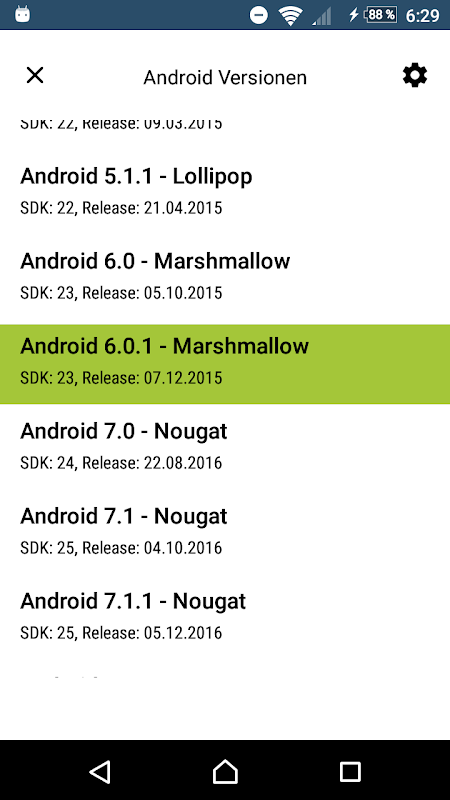- Indication de l’âge du système depuis la sortie de la version Android correspondante.