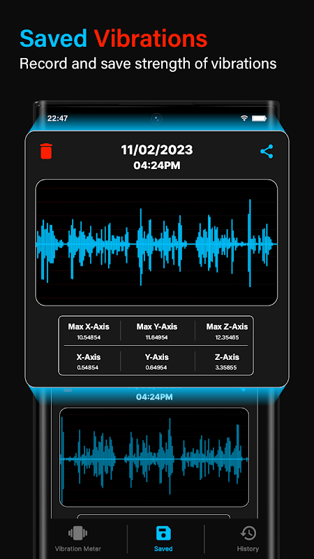 La fonction d'application de surveillance des vibrations de la machine de l'application Vibration Meter - Vibrometer permet aux utilisateurs de surveiller en permanence l'état de leurs machines. Cette fonctionnalité peut détecter les problèmes potentiels avant qu'ils n'entraînent des pannes coûteuses, ce qui réduit les temps d'arrêt et augmente la productivité.