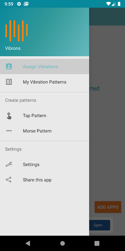 Create your own vibration patterns with Vibrons and associate them to your favourite apps.