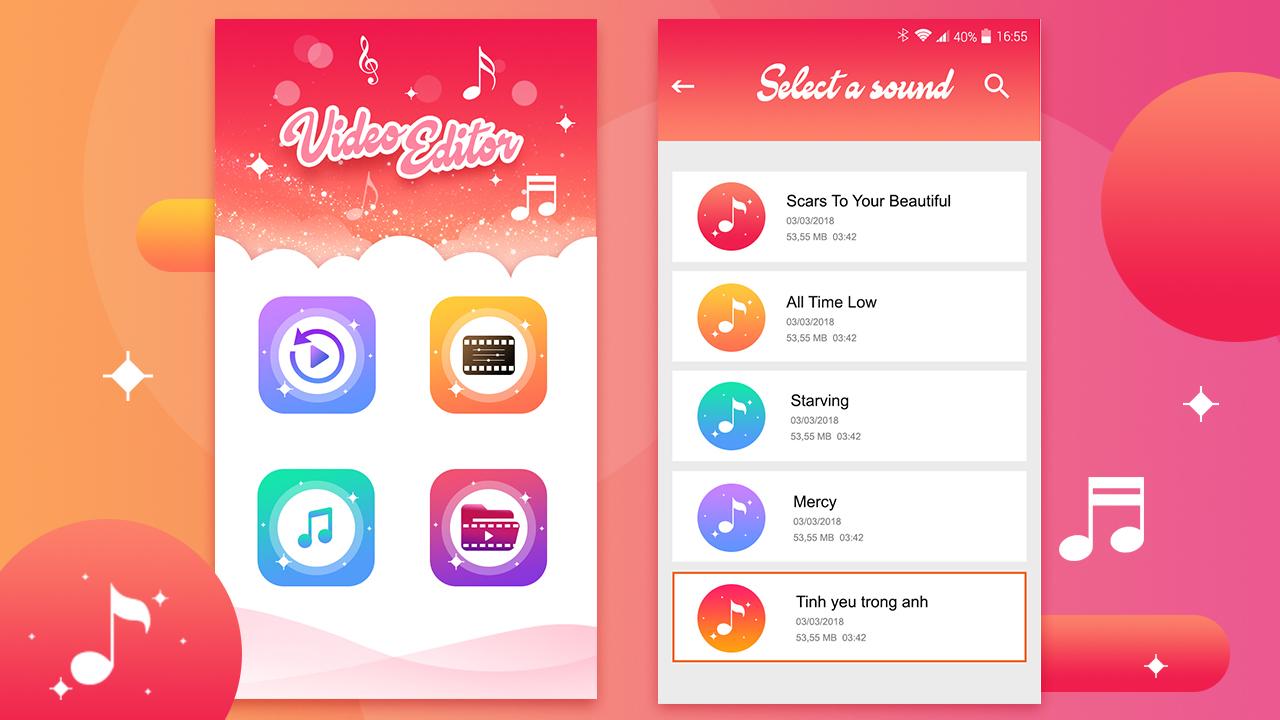 ★ Modifier le son d'une vidéo: sélectionnez une vidéo favorite, sélectionnez une chanson préférée et remplacez le son de la vidéo par cette chanson.
