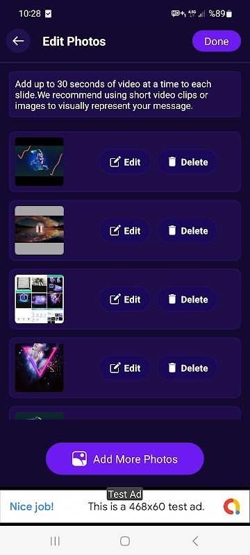 - De nombreux filtres et effets photo : Glitch, effets de transition...