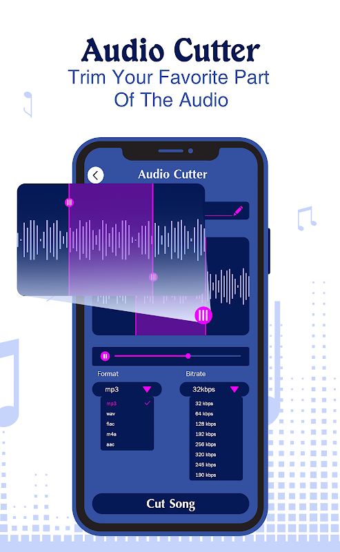 * Easily convert audio and cut with mp3 format. Free audio cutter app.