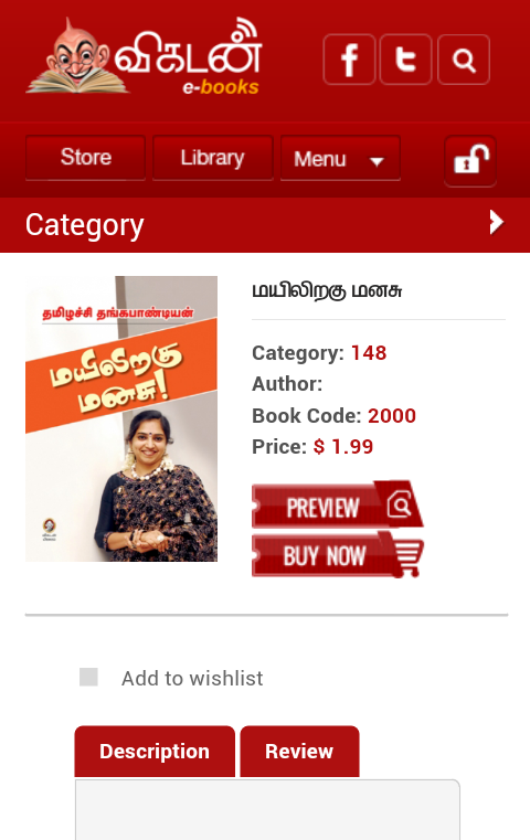 Over 100+ Tamil titles in various genres such as Arts, Biography, Fiction, Farming, Finance, Health, Humour, Literature,