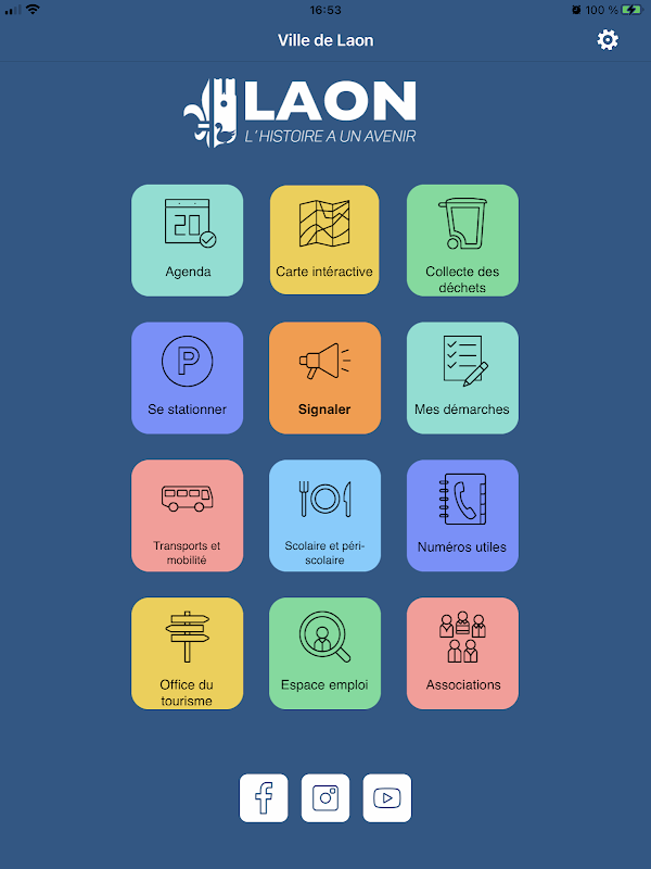 - Accès aux comptes Facebook, Twitter et Instagram de la Ville de Laon