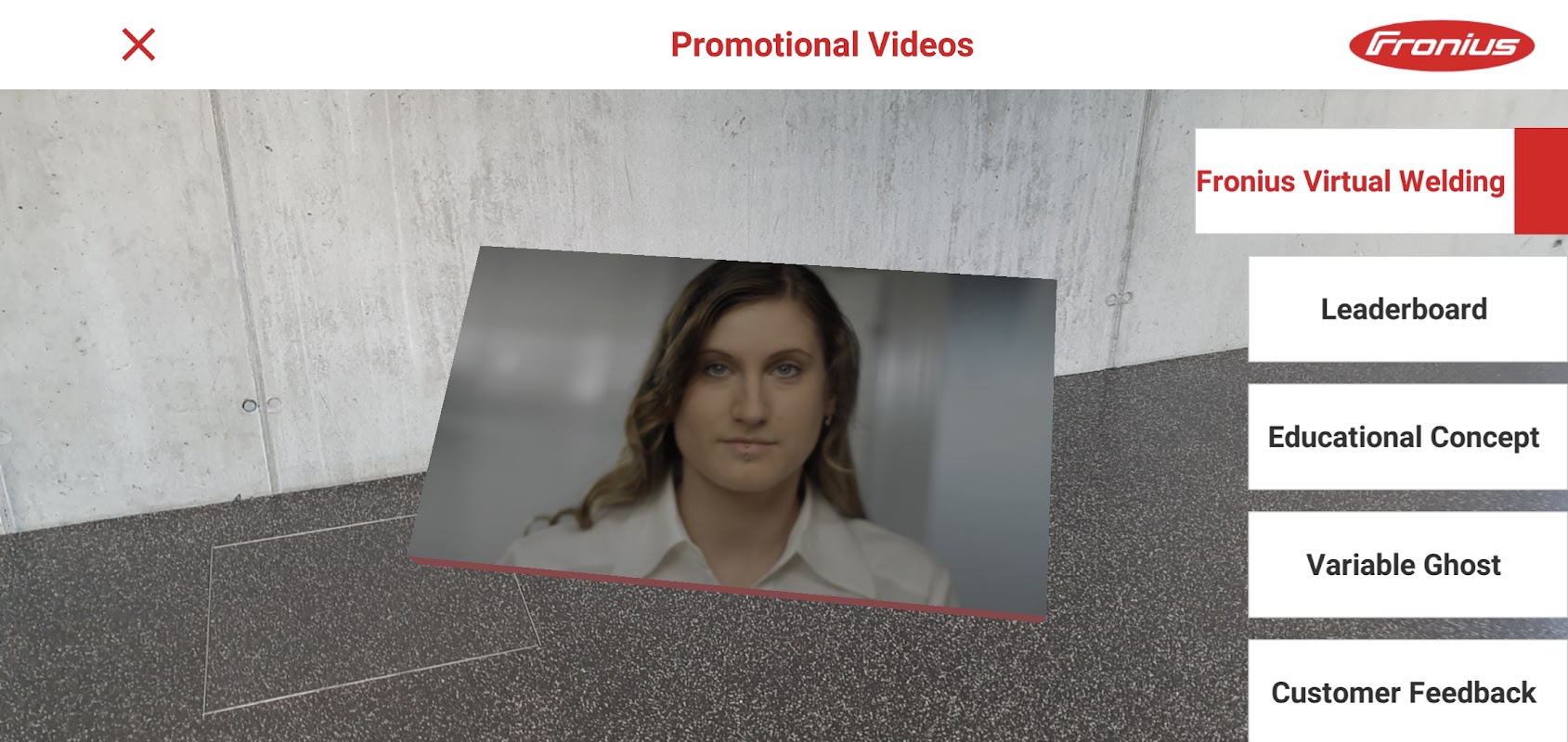Cette application, disponible gratuitement, combine facilement la présentation et l'information avec plaisir. En utilisant une application de réalité augmentée (AR), il est possible d'afficher le contenu comme des vidéos sur le soudage virtuel, simulation 3D des processus de soudage, ainsi que des explications sur les principaux avantages de la formation de soudage virtuelle sur une surface plane. Les marqueurs de suivi ne sont plus nécessaires. VirtualWelding AR fonctionne avec tout dispositif de support ARCORE respectivement Arkit ainsi que la solution logicielle Vuforia.