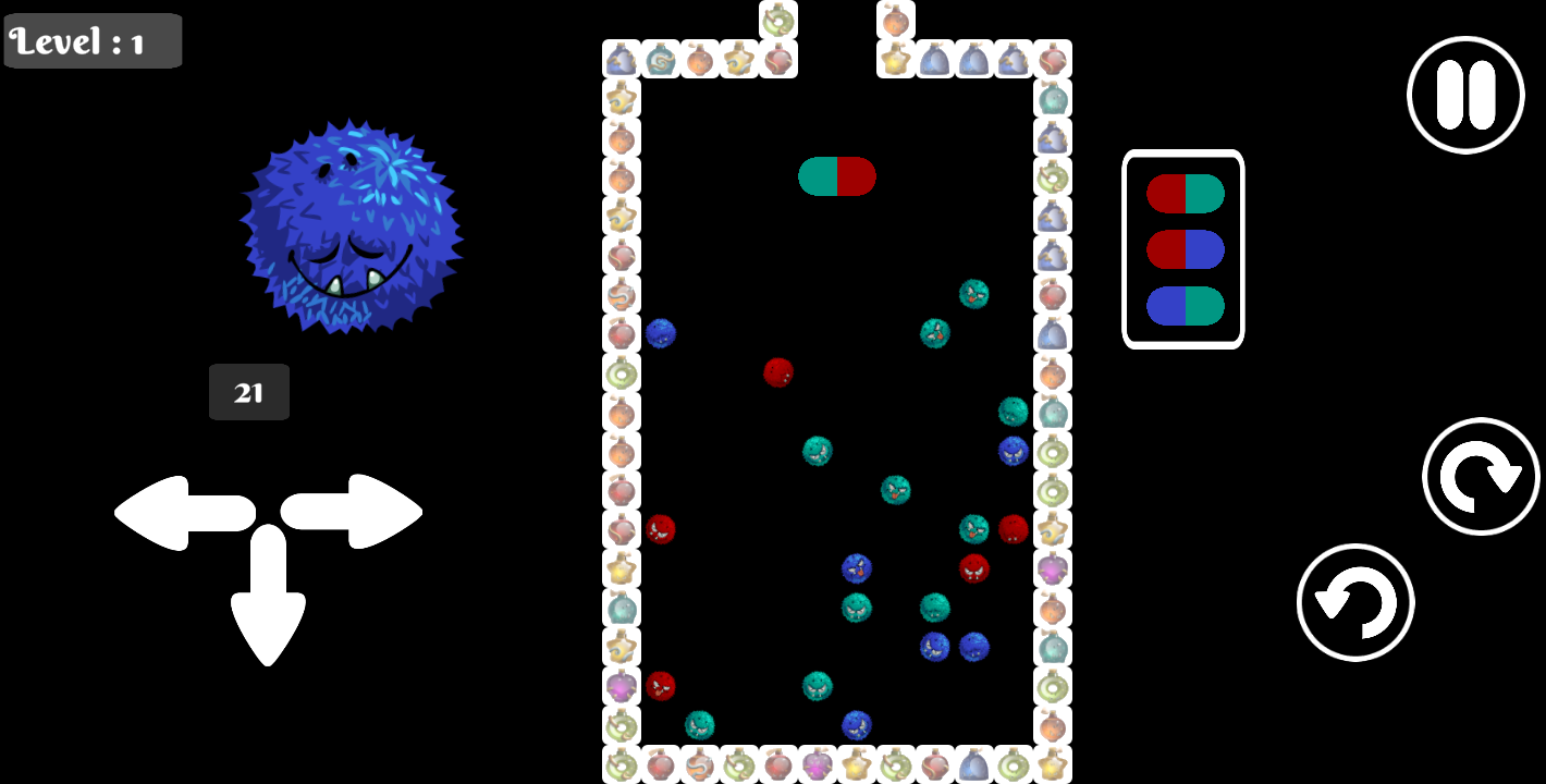 - Horizontal or vertical, as long as the number of bacteria and vitamin pills is at least 4 units, the bacteria will be killed.
