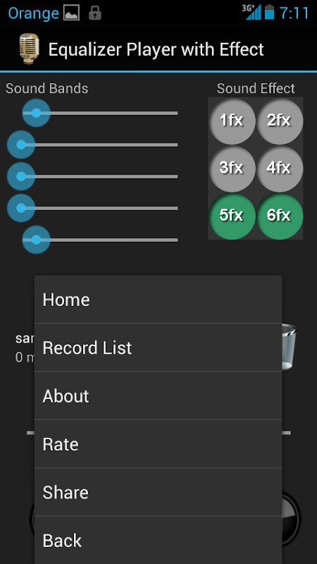 Different interface for record screen, record list screen, equalizer player screen and sound effect.