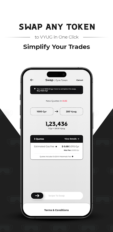 ● Échanges de jetons en un clic : échangez sans effort n'importe quel jeton contre des jetons VYUG en un seul clic, rationalisant ainsi votre expérience de trading.