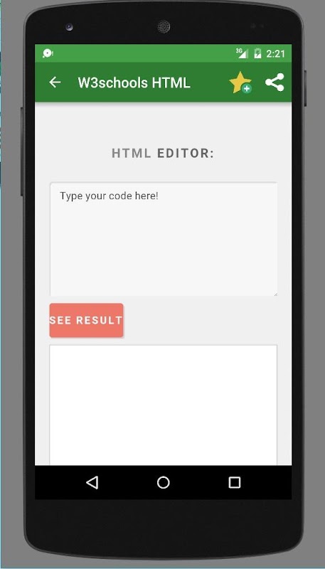 W3Schools Offline application provides brief introduction about HTML and it helps to learn HTML in easy way. It contains lots of features such as HTML Editor, Offline HTML Quiz and etc.