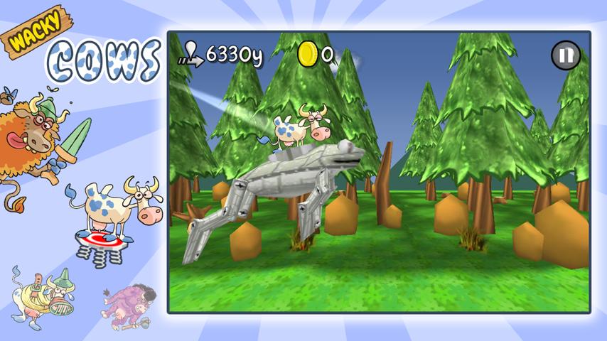 Wacky Cows is a funny video game with realistic physics simulation. You will have to use your brains to know when is the right moment to use a gadget and help your cow to reach more distance.