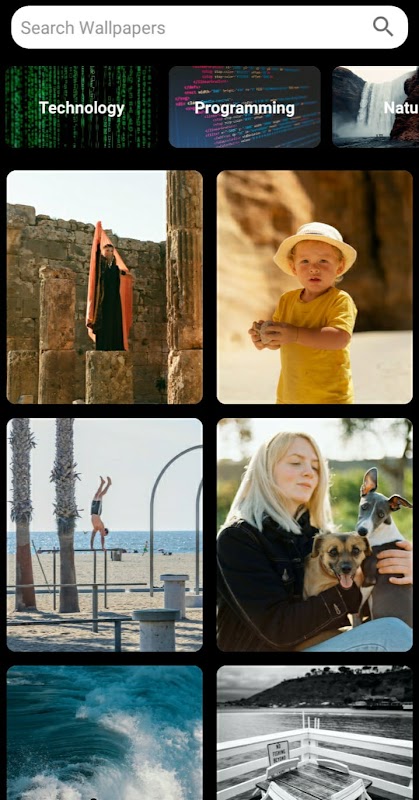 Choisissez l'une des photos/images sélectionnées dans la collection de fonds d'écran. Une image panoramique parmi diverses catégories comprend la technologie, la programmation, la nature, les voyages, l'architecture, les arts, la musique, l'abstrait, les voitures, les fleurs, etc.