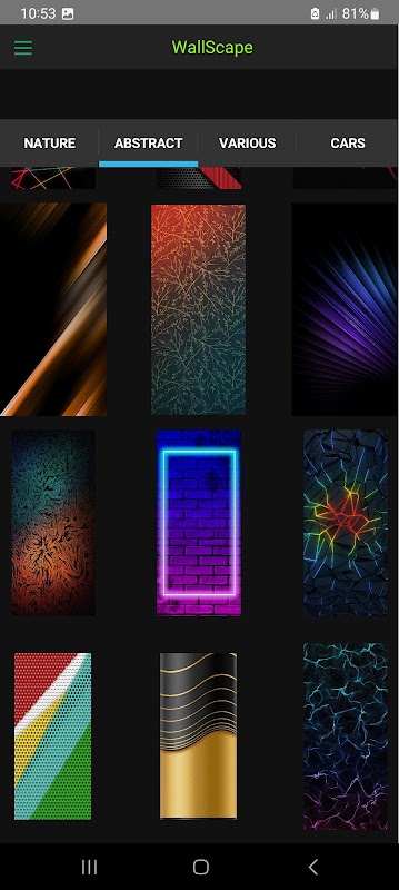 > L'application propose quatre listes riches en catégories pour choisir les meilleurs fonds d'écran de votre choix