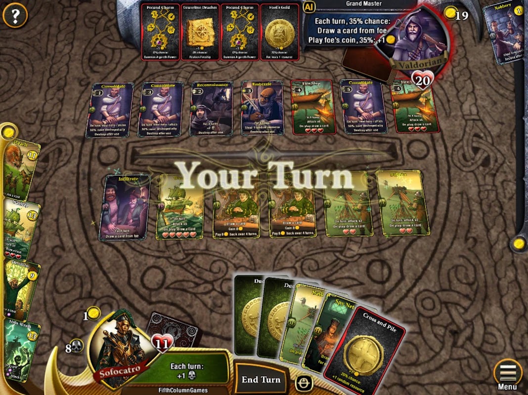 Vous détenez toutes les cartes pour construire vos decks et partir en guerre ! Combattez sur le champ de bataille avec des chevaliers et des bêtes, dans les coulisses avec des rumeurs et des complots, ou optez pour leurs portefeuilles avec des embargos et des prêts prédateurs ! Plongez dans un monde de mystère, d'intrigue et de magie avec quatre factions distinctes, chacune avec des mécanismes différents et une variété de héros à débloquer et à jouer. Laissez votre style dicter la façon dont vous voulez gagner en collectant des cartes qui changent continuellement la façon dont vous pouvez jouer au jeu.