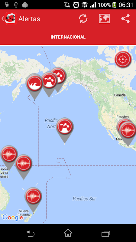 application mobile qui informe l'utilisateur et affiche divers événements météorologiques tels que Quake, Tsunami, Volcan et Cyclone, l'atlas aussi des zones à risque représentées: Glissements de terrain, Chaps, Innundación. Les volcans, les cendres volcaniques et les tsunamis du Mexique et du monde.