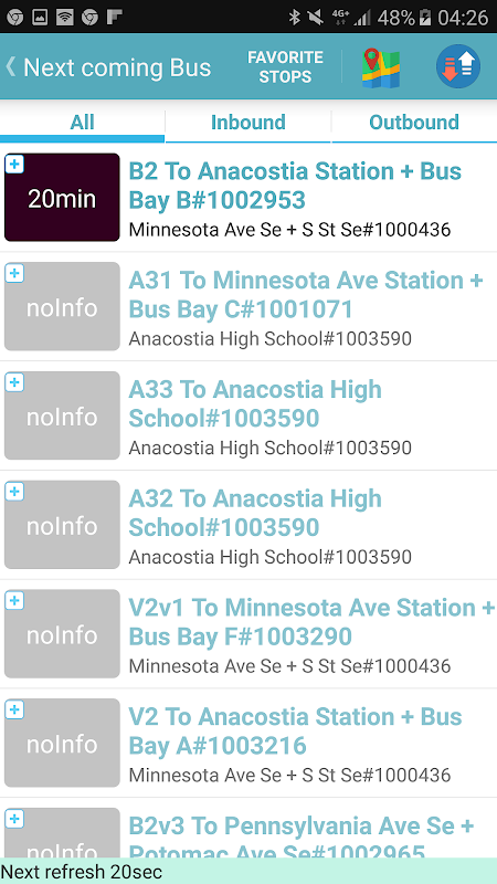 - Prédisez la prochaine base de bus la plus possible à venir sur votre emplacement actuel