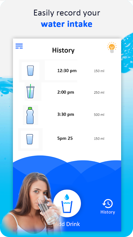 Water drinking reminder drink water, you could easily record your water drinking in our water tracker app. daily drink water reminder app and drinking water reminder app is the best drink water app. water reminder apps free & drink water notification will be your personal drink tracker app. water drinking app is drink water daily reminder you can easily lose your fat in this water drinking reminder. If you follow this drink water app you could lose your fat because this is the best daily water drink tracker and reminder. Daily water drink tracker and reminder app will also keep your body in healthy condition. Stay hydra and release stress with this drink water tracker app and water apps for drinking water.