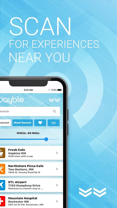 The world is changing, but there is still so much to discover. Wayble is a location-based app that connects you with the things you love most and enhances each experience. Order dinner from a new restaurant, find your way through a busy airport, or check in for an appointment before you arrive—all within a single app.