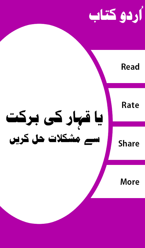 Book reading is one of the most common hobby found among people of all age groups but carrying a book everywhere is difficult some times so we have designed this beautiful app for all Urdu book lovers. This "Urdu book" app contains a book named "Wazifa Ya Qahaaro" for solving Complex Problems.