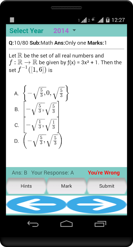 5. Progress of tests is provided. The status of each question is shown (correct or wrong) .