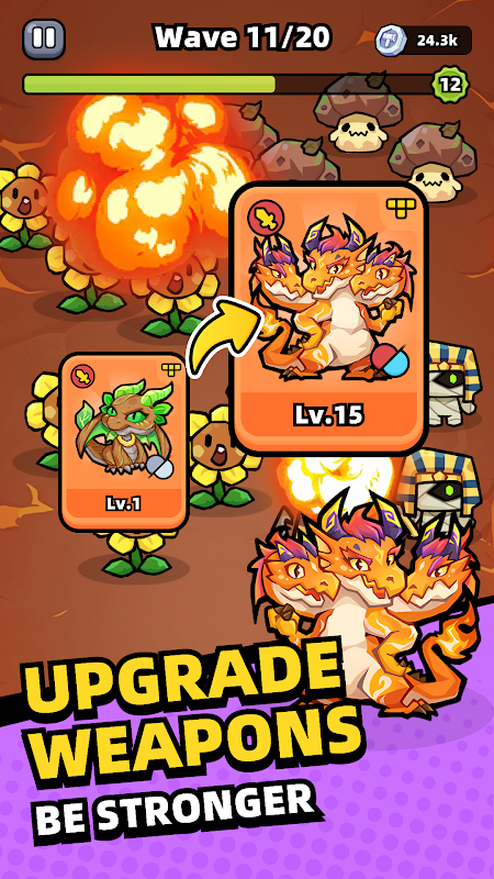 Dans Weapon Master, chaque niveau est conçu avec de nombreux éléments intéressants, tels que Rhinos, Pharaon d'Égypte et Rockman, etc. Explorez et résolvez des énigmes, éliminez des vagues d'ennemis d'élite : chaque scénario de combat est rempli de plaisir et de défis.